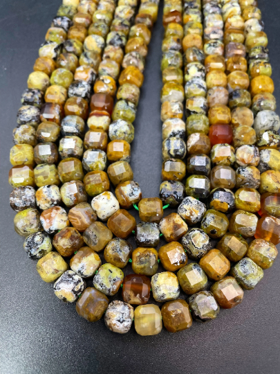 AAA Natural Yellow Opal Gemstone Bead Faceted 8mm Cube Shape, Gorgeous Yellow Gray Opal Gemstone Beads