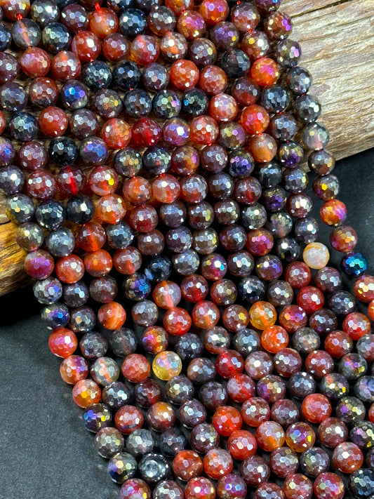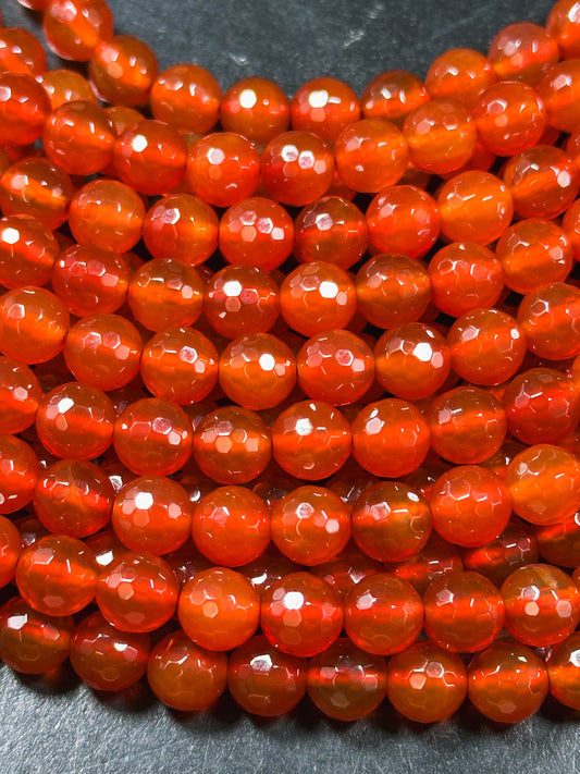 Mystic Natural Carnelian Gemstone Beads Faceted 6mm 8mm 10mm Round Beads, Beautiful Ruby Red Orange Color Gemstone Beads Full Strand 15.5"