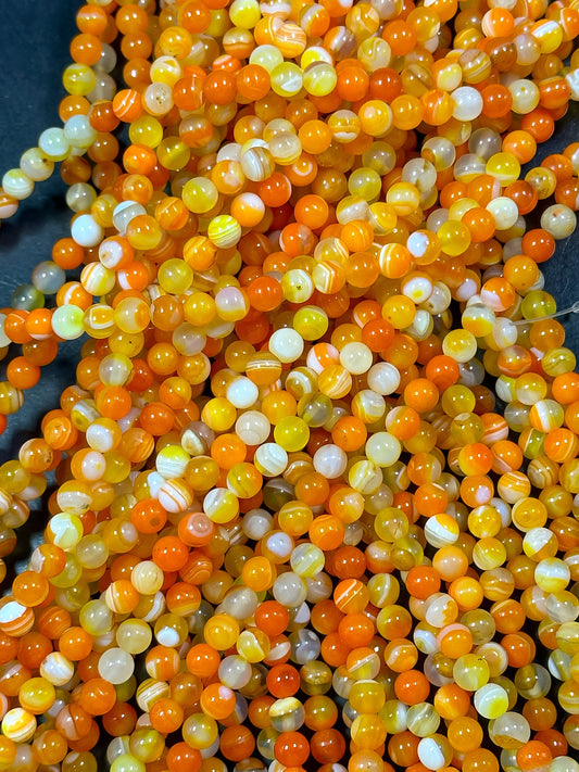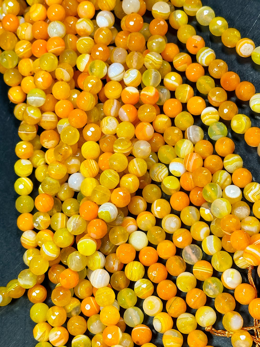 NATURAL Botswana Agate Gemstone Bead Faceted 6mm 8mm 10mm 12mm Round Beads, Beautiful Orange Yellow Color Gemstone Beads Full Strand 15.5"