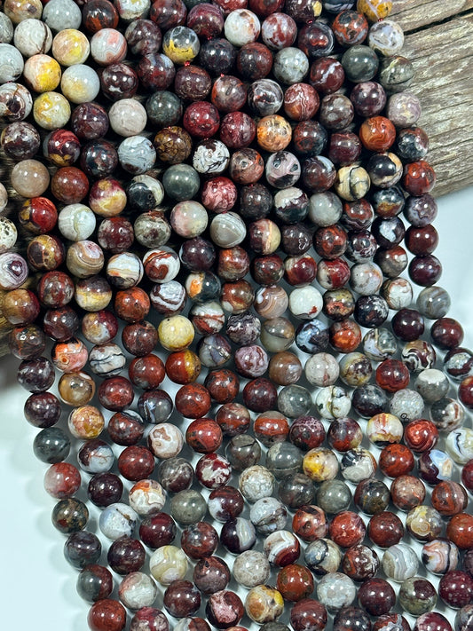 NATURAL Mexican Red Agate Gemstone Bead, 6mm 8mm 10mm Round Beads Beautiful Multicolor Red Gray Color Agate Beads Full Strand 15.5"
