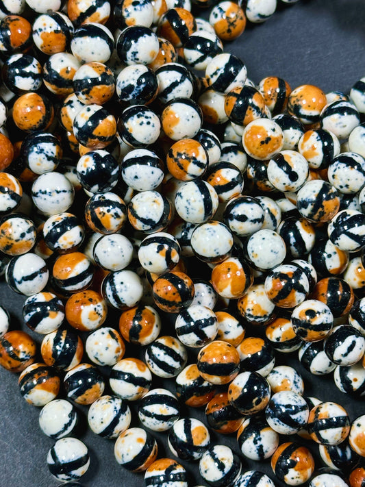 Beautiful Rain Flower Stone Bead 4mm 6mm 8mm 10mm Round Beads, Gorgeous Multicolor Orange Black White Rain Flower Beads Full Strand 15.5"