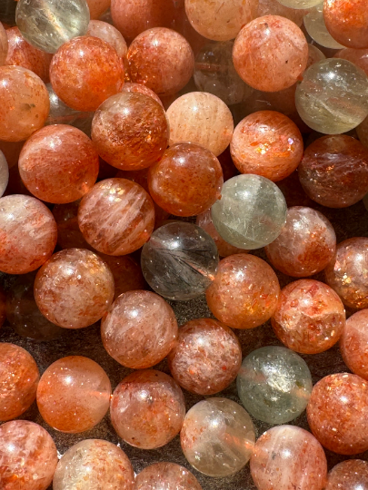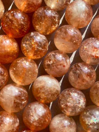 AAA Natural Fire Sunstone Bead 4mm 6mm 8mm 10mm 12mm Round Smooth, Gorgeous Natural Peach Orange Color with Gold Flash Color