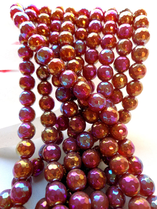 Mystic Natural Carnelian. 4mm 6mm 8mm ,10mm ,12mm Faceted Round Beads, Natural Ruby Red Color bead . Full length 15.5 inches, Great AAA Quality!