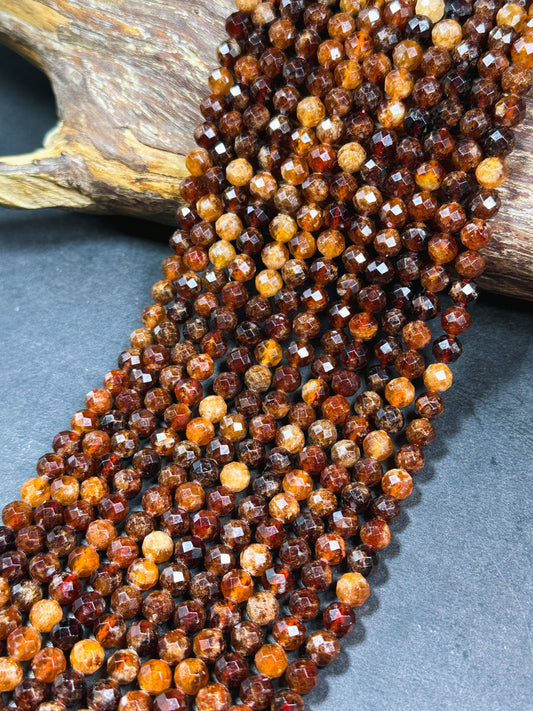 AA Natural Hessonite Orange Garnet Gemstone Bead Faceted 7mm 9mm Round Bead, Gorgeous Orange Brown Color Hessonite Garnet Bead, 15.5" Strand
