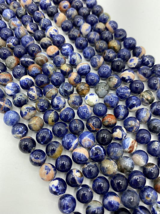 Natural Orange Sunset Sodalite Gemstone Bead 6mm 10mm Round Beads, Beautiful Natural Blue Orange Color Gemstone Beads