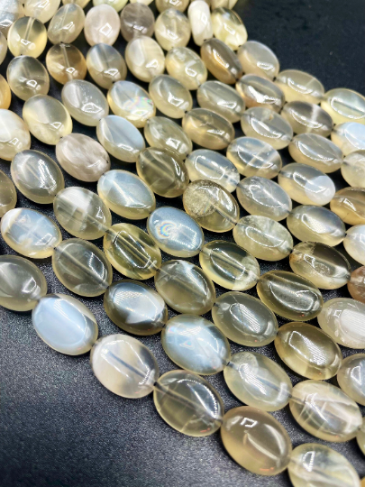 AAA Natural Gray Rainbow Moonstone Bead, 10x14mm 9x10mm Oval Shape, Great Quality Gray Color Moonstone Bead, Full Strand 15.5”