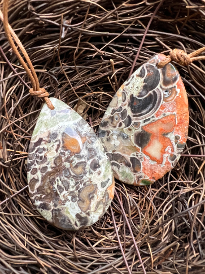 Natural Rainforest Jasper Pendant Teardrop Shape 32x52mm Gorgeous Green Orange Brown Color Loose Pendant