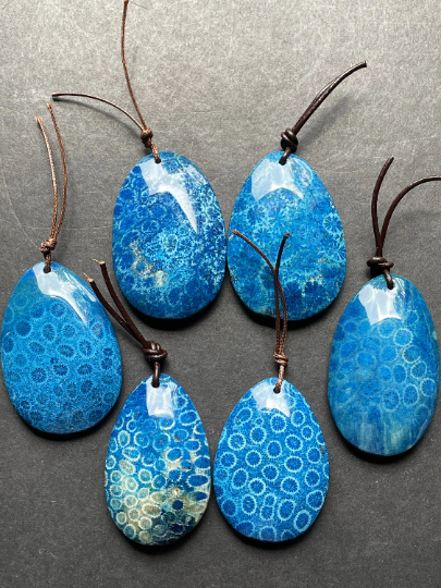 Beautiful Natural Fossil Coral Stone Pendant 30x45mm Teardrop Shape. Beautiful Blue Color Fossil Coral Gemstone Pendant Great Quality Pendant