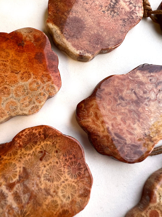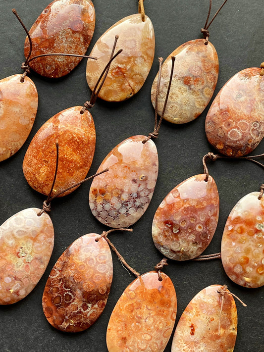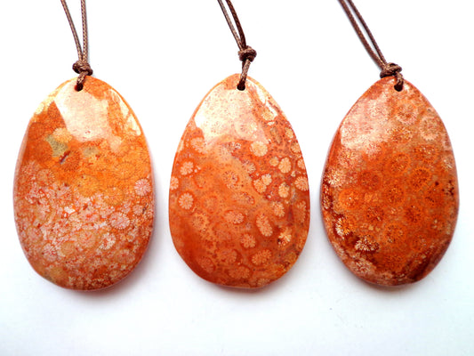 AAA Natural Fossil Coral Gemstone Pendant 30x50mm Teardrop Shape Pendant, Gorgeous Natural Orange Brown Fossil Coral Pendant