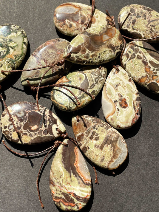 Natural Ocean Jasper Gemstone Pendant 30x50mm Teardrop Shape