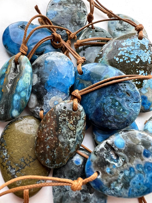 NATURAL Gemstone Ocean Jasper 43x31mm Deep Blue Color Oval Shape, Great Quality Ocean Jasper Pendant