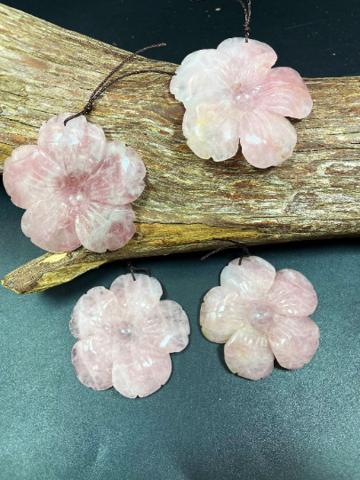 Hand Carved Rose Quartz Flower Pendant, Handmade Gemstone Pendant, 50mm Natural Pink Rose Quartz Gemstone Pendant