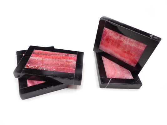 NATURAL Gemstone Rhodochrosite Pendant, Rectangle with Black Edges 36x26mm, Great for making Jewelry! Not treated in anyway! AAA quality