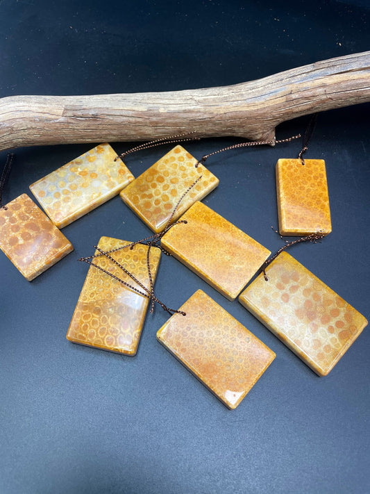 AAA Natural Fossil Coral Gemstone Pendant 32x46mm 40x55mm Rectangle Shape, Beautiful Light Brown Color Fossil Coral Pendant