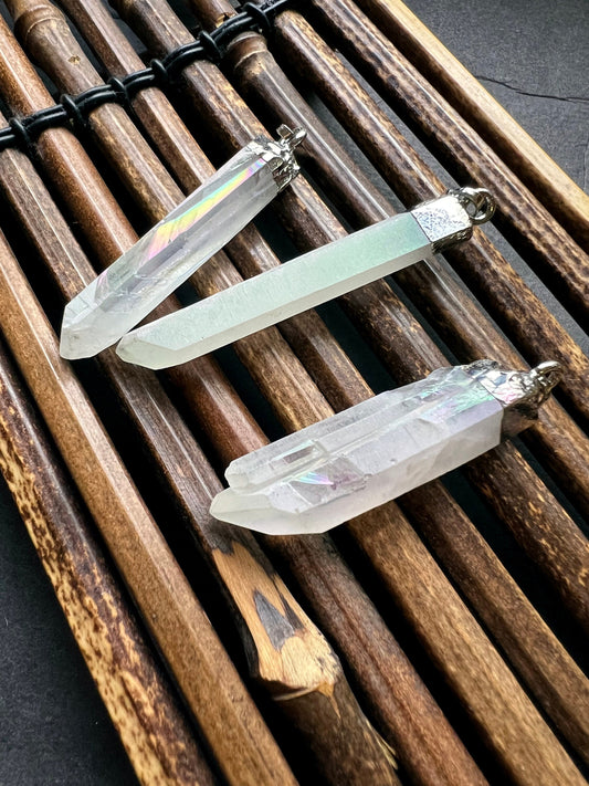 Natural Mystic Quartz Pendant, 10x48mm, Stick Shape Pendant, Beautiful White Color Mystic Quartz Pendant