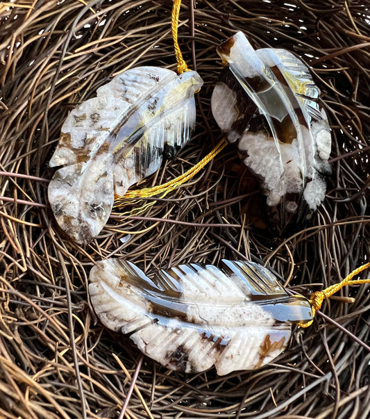 Natural Blossom Flower Agate Gemstone Feather Shape Pendant 24x50mm Beautiful Black Brown Color Gemstone Pendant Loose Pendant Loose Bead