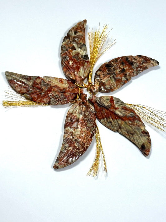 Hand Carved Natural Ocean Jasper Gemstone Pendant, Hand Carved Leaf Shape Pendant