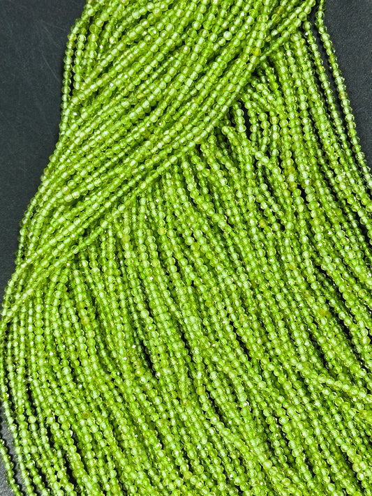 AAA NATURAL Peridot Gemstone Bead Faceted 2mm Round Bead, Beautiful Natural Green Color Peridot Gemstone Bead, Excellent Quality Beads 15.5"
