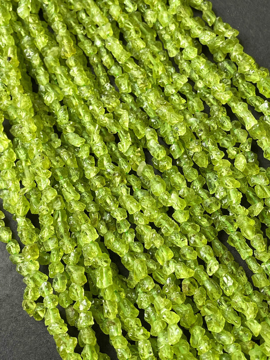 Natural Raw Green Peridot Gemstone Bead Freeform Nugget Shape Bead, Beautiful Natural Green Peridot Gemstone Beads Full Strand 15.5"