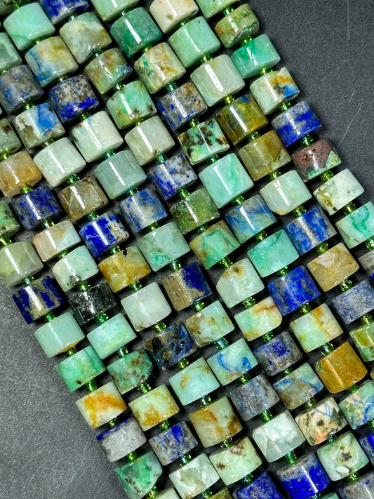 AA NATURAL Chrysocolla Gemstone Bead 10mm Rondelle Cylinder Wheel Shape, Gorgeous Green Blue Color Chrysocolla Gemstone Bead Great Quality