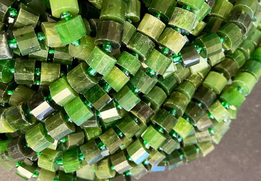 Natural Canadian Jade Gemstone Bead Faceted 9mm Cylinder Wheel Shape, Gorgeous Green Color Canadian Jade Beads
