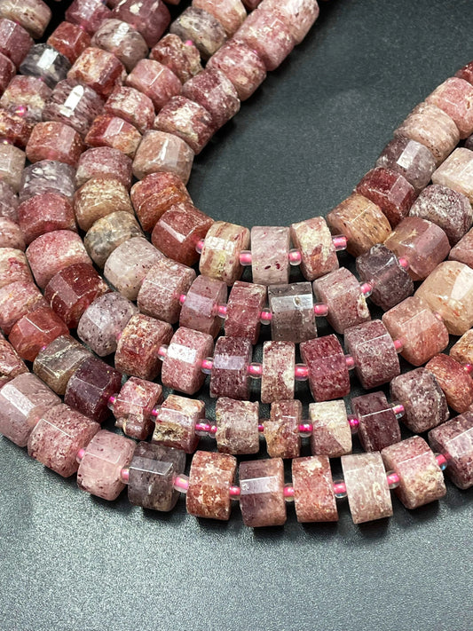 AAA Natural Strawberry Quartz Gemstone Bead Faceted 10x7mm Rondelle Pinwheel Cylinder Shape, Beautiful Natural Red Pink Color Strawberry Quartz Beads 15.5"