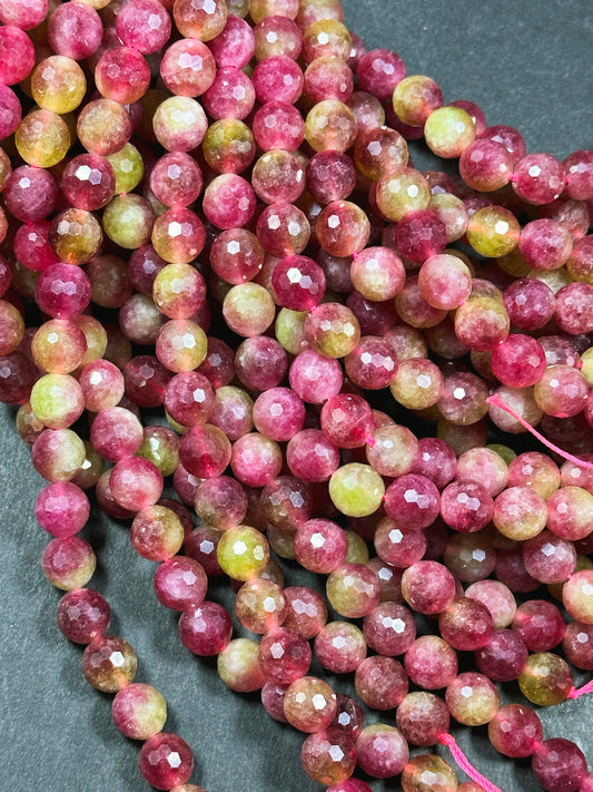 Natural Watermelon Tourmaline Quartz Gemstone Bead Faceted 6mm 8mm 10mm Round Beads, Beautiful Green Red-Pink Color Beads, Great Quality Full Strand 15.5"