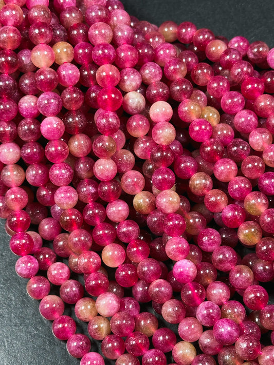 Natural Watermelon Tourmaline Quartz Gemstone Bead Smooth 8mm Round Beads, Beautiful Green Red Color Beads, Great Quality Full Strand 15.5"