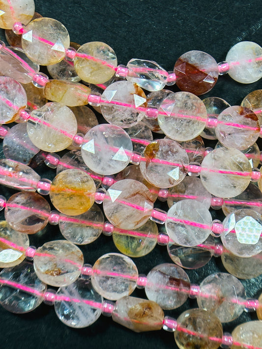 Natural Fire Cherry Quartz Gemstone Bead Faceted 9mm Coin Shape Bead, Beautiful Natural Clear Red Pink Cherry Quartz Bead, Full Strand 15.5