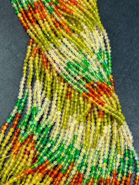 NATURAL Multicolor Quartz Gemstone Bead Faceted 3mm Round Beads, Beautiful White Red Green Multicolor Quartz Full Strand 15.5"