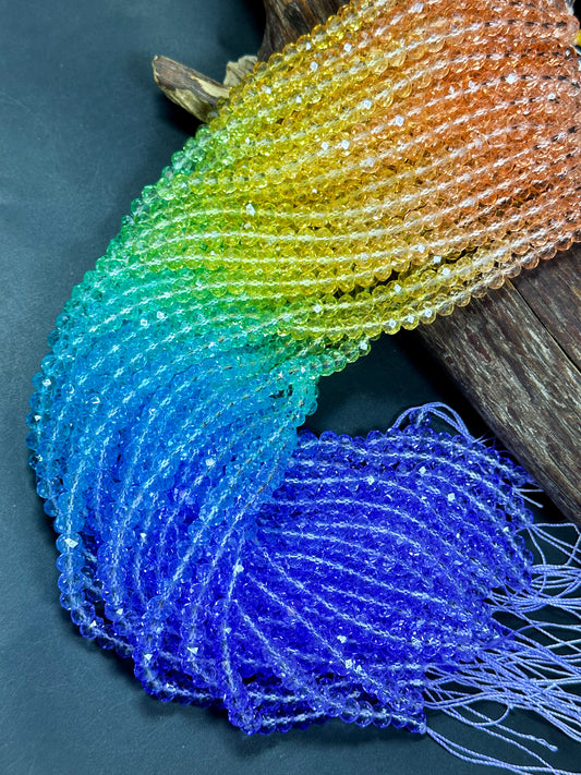Gorgeous Multicolor Rainbow Crystal Beads Faceted 3mm 4mm 6mm 8mm Rondelle Shape, Beautiful Rainbow Sunset Color Crystal Beads Full Strand 14.4"