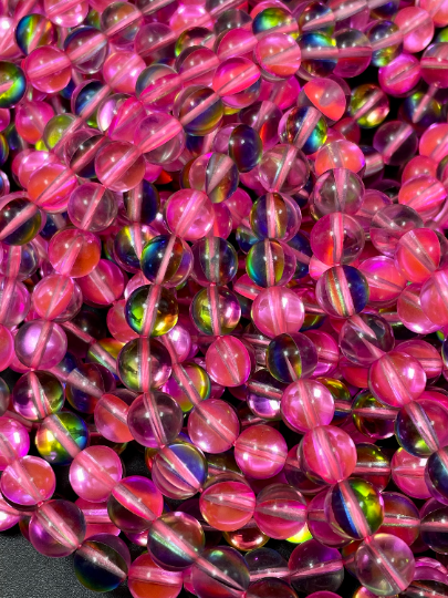Beautiful Mystic Aura Quartz Beads 6mm 8mm 10mm 12mm round bead. Gorgeous light pink rainbow color, unique looking, 15.5" strand.