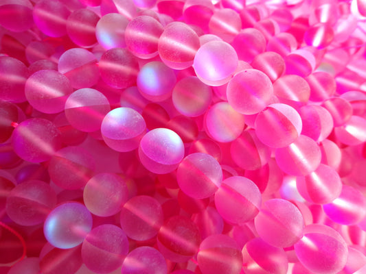 Frosted Aura Quartz Beads, 6mm,8mm,10mm,12mm beads, Round Beads, Rainbow Matte Pink Beads, Great Quality, Full Strand 15.5 inches.