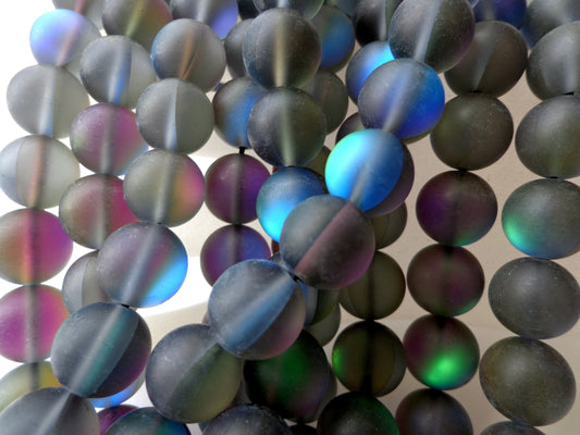 Frosted Aura Quartz Beads, 6mm,8mm,10mm,12mm beads, Round Beads, Matte Rainbow Black Beads, Great Quality Beads, Full Strand 15.5 inches