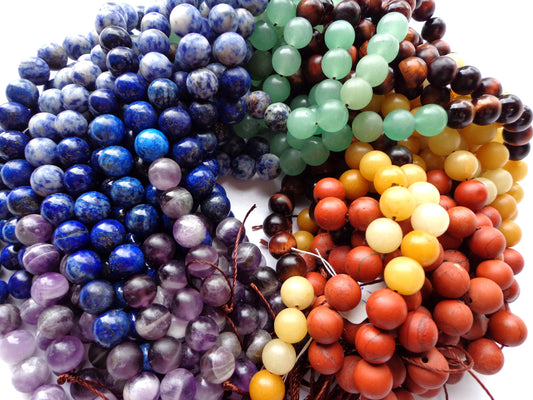 MATTE Chakra Gemstone Bead 4mm 6mm 8mm 10mm 12mm Round Bead, 7 Chakra Stone Beads, Rainbow Color Chakra Beads