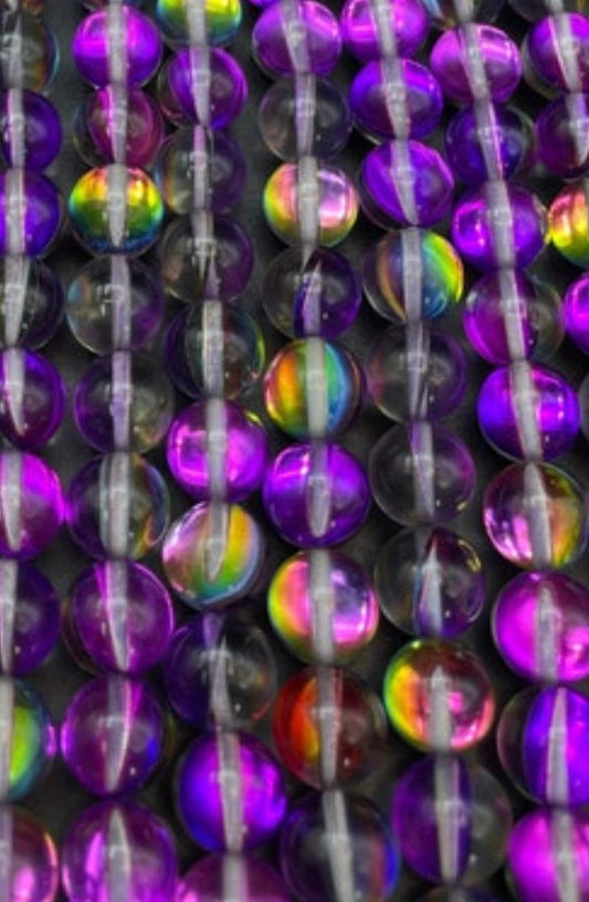 Mystic Aura Quartz Beads, 6mm,8mm,10mm beads, Round Shaped Beads, Rainbow Purple Beads, Great Quality Beads, Full Strand 15.5 inches