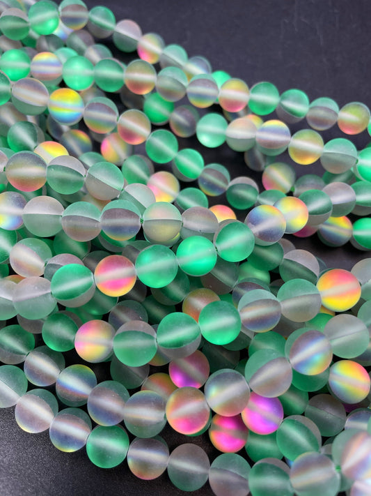 Beautiful Rainbow Mermaid Bead 6mm 8mm 10mm 12mm Round Beads, Gorgeous Matte Green Rainbow Color Mermaid Glass Bead