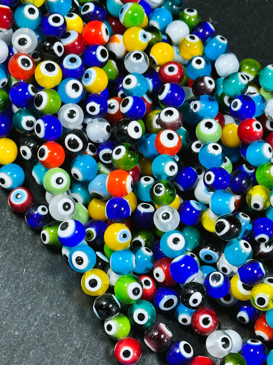 Beautiful Colorful Evil Eye Glass Beads 10mm Round Beads, Beautiful Multicolor Rainbow Evil Eye Amulet Glass Beads, Full Strand Glass Beads