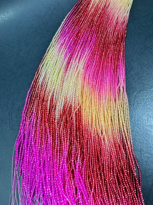 Gorgeous multi rainbow color crystal beads. Faceted 2mm 3mm round beads, Beautiful red pink yellow color loose beads Full strand 14.4"