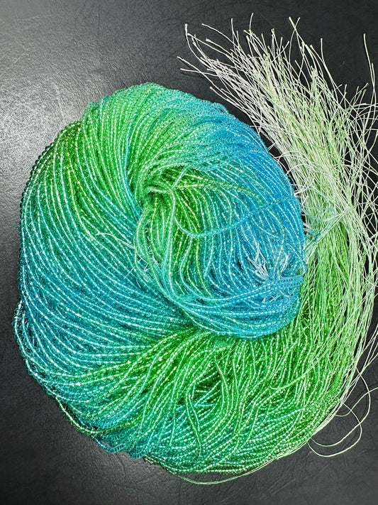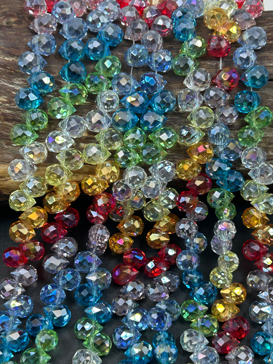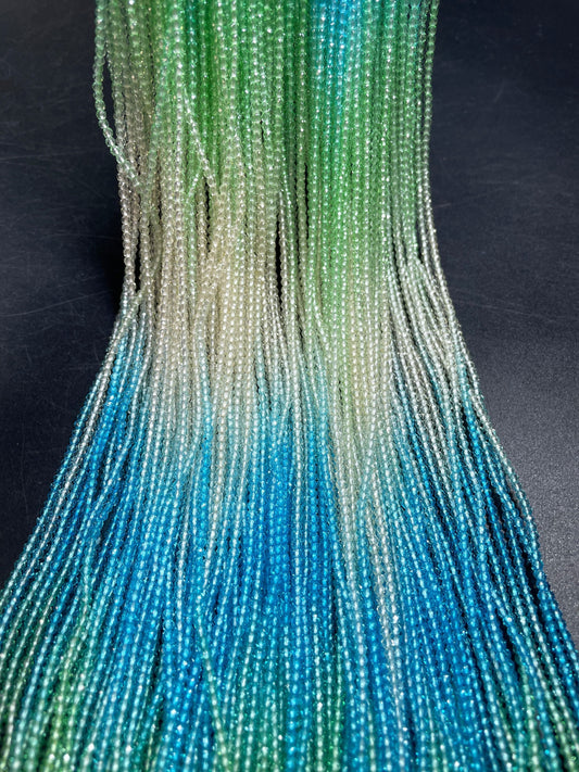 Beautiful multi rainbow color crystal beads. Faceted 2mm 3mm round beads, Gorgeous blue green color Full strand 14.4"