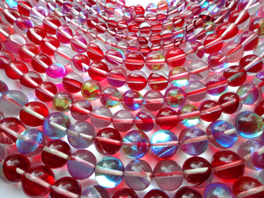 Mermaid Glass Beads, 6mm 8mm 10mm 12mm Round Beads, Beautiful Rainbow Red Beads, Great Quality Beads, Full Strand 15.5 inches