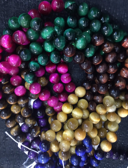 AAA Natural Multicolor Tiger Eye Gemstone Beads 4mm 6mm 8mm 10mm 12mm Round Beads, Gorgeous Rainbow Multicolor Tiger Eye
