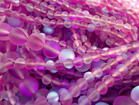 Mermaid Glass Beads 6mm 8mm 10mm 12mm Round Beads, Beautiful Matte Rainbow Purple Mermaid Glass Beads, Full Strand 15.5"