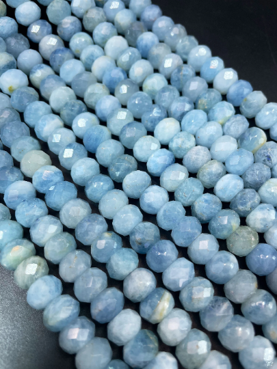 Natural Aquamarine Gemstone Bead Faceted 4x6mm Rondelle Shape, Beautiful Natural Blue Aquamarine Gemstone Bead