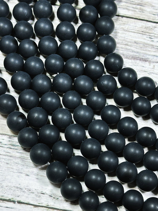 AAA Natural Matte black onyx beads . 4mm 6mm 8mm 10mm 12mm Round beads . smooth round bead . Gorgeous matt finished black onyx bead . 15.5”