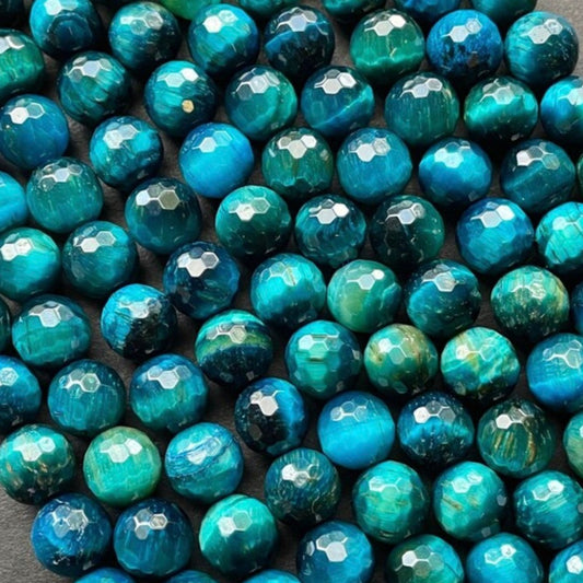 AAA Natural Tiger Eye Gemstone Bead Faceted 6mm 8mm 10mm 12mm Round Bead, Gorgeous Turquoise Blue Color Tiger Eye Bead