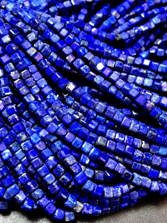 AAA Natural lapis lazuli stone bead. Faceted 2mm square, cube shape bead. Beautiful natural blue color lapis lazuli gemstone. 15.5” Strand
