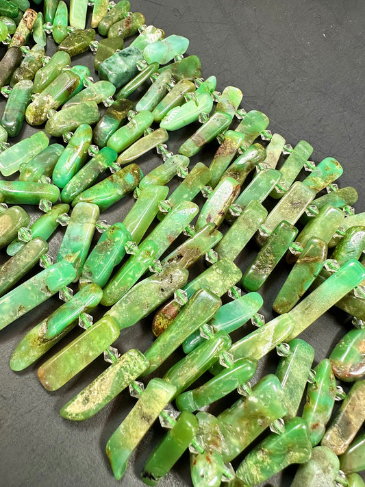 AAA NATURAL Chrysoprase Gemstone Bead, Graduated Stick Shape Bead. Gorgeous Jade Green Color Beads Excellent Quality Full Strand 15.5"