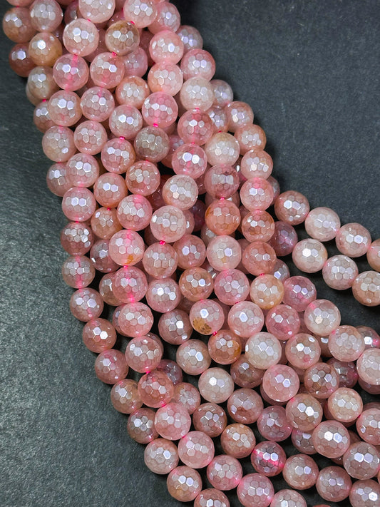 Mystic Natural Strawberry Quartz Gemstone Bead Faceted 6mm 8mm Round Beads, Beautiful Mystic Natural Pink Color Strawberry Quartz Bead 15.5"