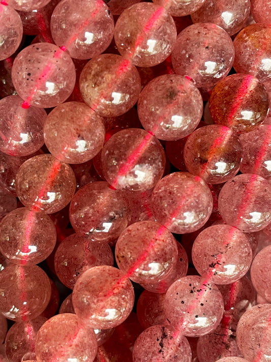 AAA Natural Strawberry Quartz Gemstone Bead 6mm 8mm 10mm Round Beads, Gorgeous Natural Red Pink Strawberry Quartz Gemstone Beads, 15.5" Strand
